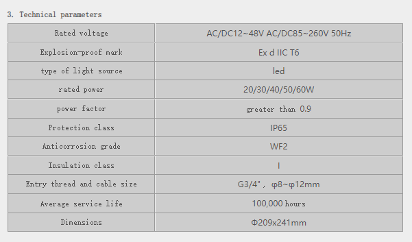 It has complied with the explosion-proof standard of the national authority, and is produced in full accordance with the national explosion-proof standard. It has explosion-proof and anti-static properties, meets the requirements of new LED explosion-proof lamps, and can work safely and reliably in flammable and explosive dangerous places.