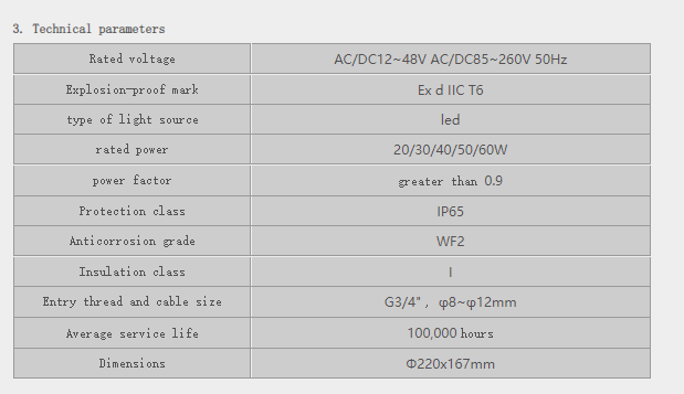 1. Scope of application The company has developed the HSG8840LED maintenance-free explosion-proof lamp in order to meet the needs of fixed lighting in flammable and explosive places and related roads, indoor and outdoor operations and construction sites , which can work safely in flammable and explosive places. 2. Performance characteristics